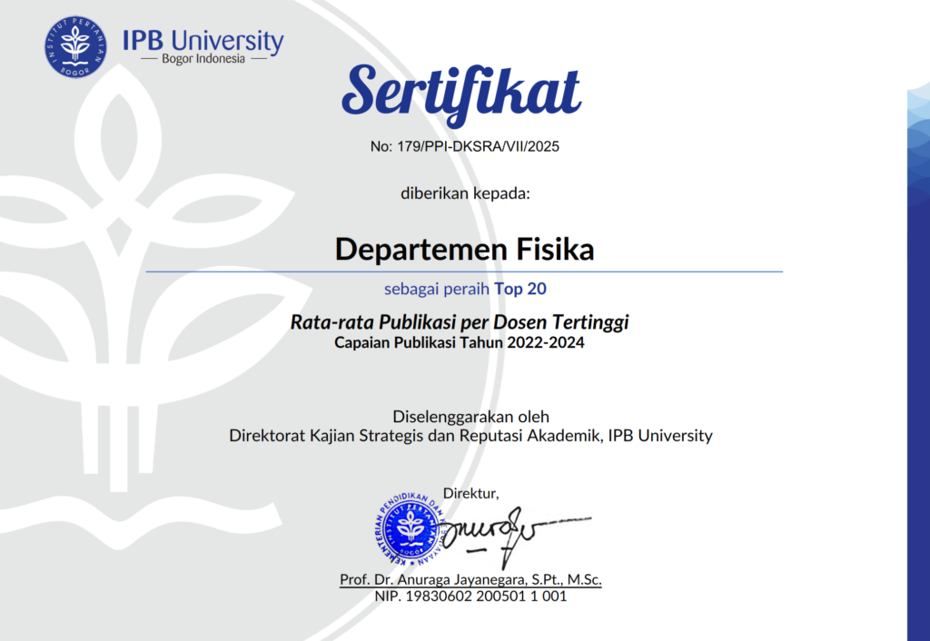 This award is given by the Directorate of Strategic Studies and Academic Reputation (DKSRA), IPB University, for the publication of the years 2022-2024. This is a testament to the department’s dedication to research excellence and academic rigor.